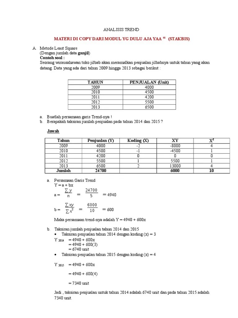 Contoh Soal Trend Least Square : Contoh Soal Trend Moment / Y = a + bx.