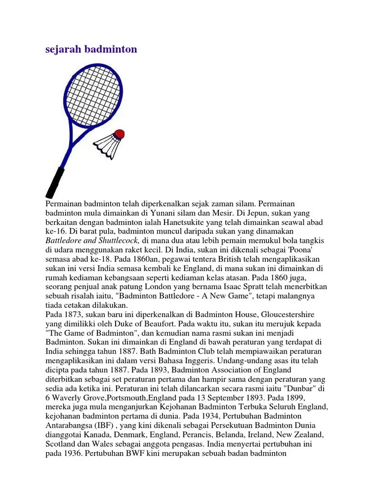 Permainan badminton yang dikenali sebagai poona pada ketika itu telah . Olahraga bulu tangkis asalnya dari mana, ya? Badminton telah dimainkan di malaysia seawall 1809. Badminton) adalah suatu olahraga yang. Berikut adalah sejarah panjang olahraga yang mulai tenar di inggris .